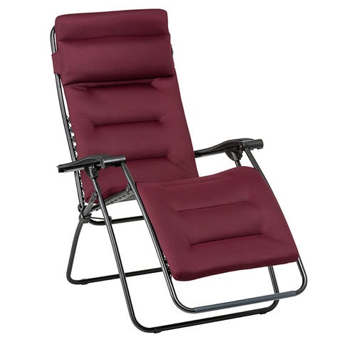 ふっくらした高密度のポリコットンシートで覆われた3層構造のシートで、この上なく快適な座り心地を実現した「RSX AirComfort?」。折りたたみ式でありながら、くつろぎ(癒し)に理想的な*LAポジションを可能にするリクライニングチェアです。引き締め効果のあるブラックカラーのフレームに、ブラック、ワインレッド、ブラウン、ブルー、4色のカラー展開で、インテリア空間に馴染みやすいデザインに仕上がっています。また、ベランダやテラス、お庭など天候に左右されない場所にも最適で、ラフマ特有の「くつろぎの時間」をお約束します