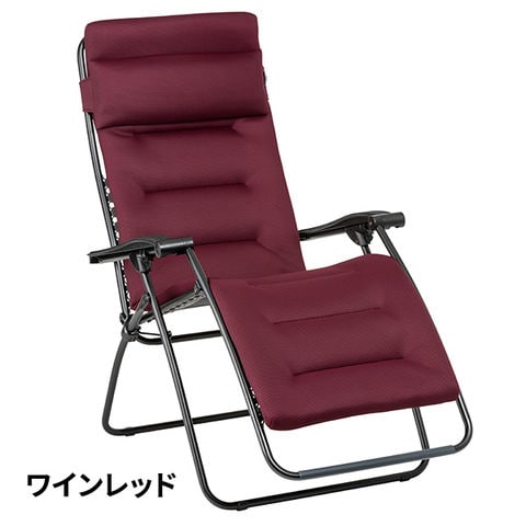 ふっくらした高密度のポリコットンシートで覆われた3層構造のシートで、この上なく快適な座り心地を実現した「RSX AirComfort?」。折りたたみ式でありながら、くつろぎ(癒し)に理想的な*LAポジションを可能にするリクライニングチェアです。引き締め効果のあるブラックカラーのフレームに、ブラック、ワインレッド、ブラウン、ブルー、4色のカラー展開で、インテリア空間に馴染みやすいデザインに仕上がっています。また、ベランダやテラス、お庭など天候に左右されない場所にも最適で、ラフマ特有の「くつろぎの時間」をお約束します