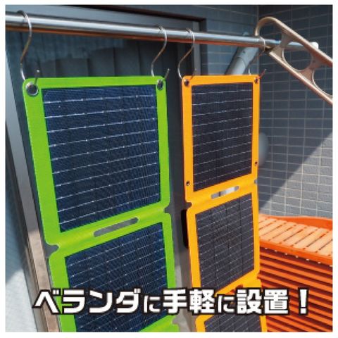 吊り下げ穴でベランダの物干し竿やリュック、テントに吊り下げたり、付属の自立スタンドでどこでも置いて使用でき、パネルを効率的に活用できます。日頃のご使用だけでなく、旅行やキャンプ、ハイキング等にも大活躍です。※フック、カラビナは付属しておりません。