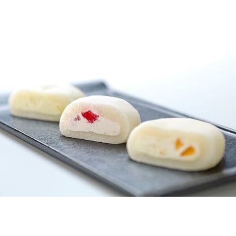 北海道生クリームに岡山県産清水白桃、瀬戸内産レモン、そしていちごのダイスカットを加え、マシュマロのように柔らかく、ふわふわなお餅で包みこみました。