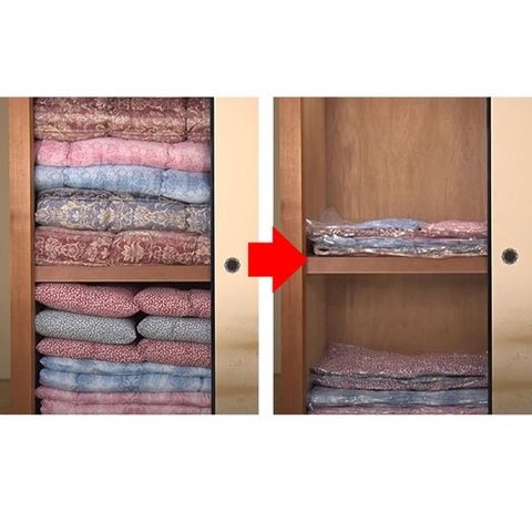 収納に場所をとるシーズン外の寝具や衣類もすっきり収納します。3分の1のサイズで収納できるので、クローゼットや押し入れもすっきりします。