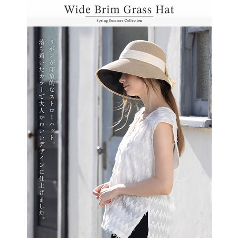 つば広グラスハット(017-c) 帽子 レディース 大きいサイズ UVカット つば広 折りたたみ 自転車 日よけ かぶーる日傘 春夏 母の日 UV 帽子 あご紐 旅行 56-63cm 小顔効果 麦わら ストローハット 自転車でもあご紐で飛ばない