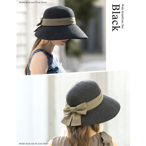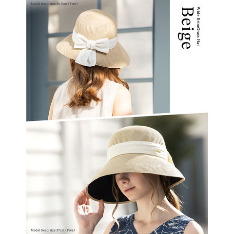 つば広グラスハット(017) 帽子 レディース 大きいサイズ UVカット つば広 折りたたみ 自転車 日よけ かぶーる日傘 春夏 母の日 UV 帽子 あご紐 旅行 56-63cm 小顔効果 麦わら ストローハット 自転車でもあご紐で飛ばない