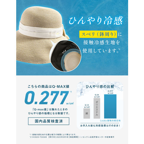 【本体】ポリエステル100% 【リボン部】ポリエステル 65%レーヨン20%麻10%綿5% 【接触冷感素材(スベリ部分)】ナイロン95%、ポリウレタン5% 【遮光芯】ポリエステル100% |