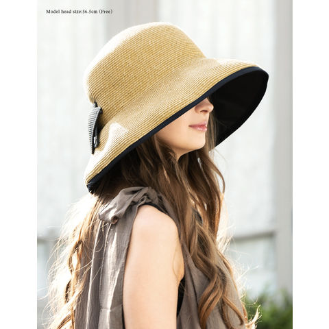 クラッシーハット(066) 帽子 レディース 大きいサイズ 完全遮光 遮光100%カット UVカット つば広 折りたたみ 自転車 飛ばない 日よけ かぶーる日傘(かぶる日傘) 春 夏 母の日 UV 帽子 麦わら あご紐 56-63cm 小顔効果 自転車でもあご紐で飛ばない