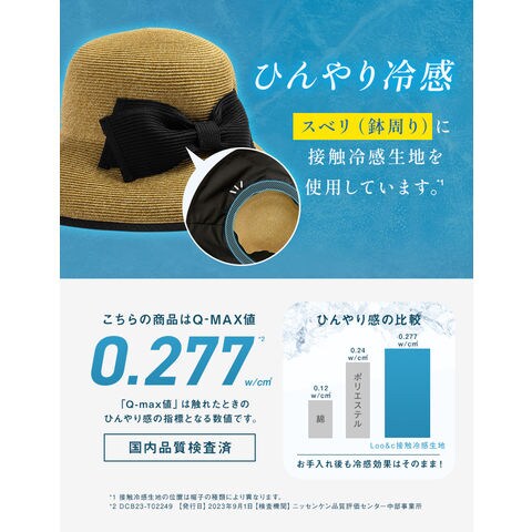 【本体】分類外繊維(紙)75%、ポリエステル25% 【切替部】ポリエステル100% 【接触冷感素材(スベリ部分)】ナイロン95%、ポリウレタン5% 【遮光芯】ポリエステル100% |