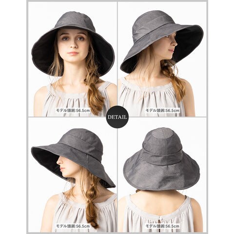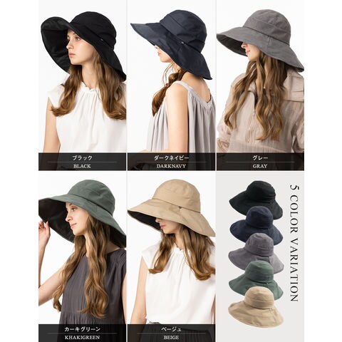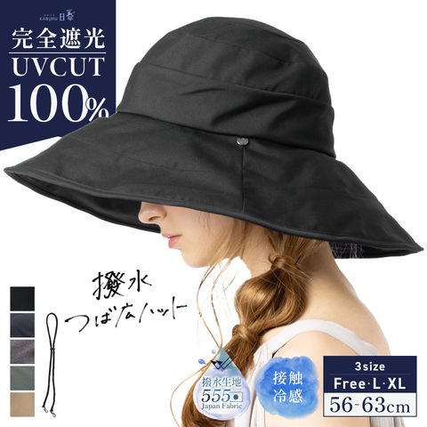 撥水つば広ハット2023(103)帽子 レディース 大きいサイズ 撥水 完全遮光 遮光100% UVカット つば広 折りたたみ あご紐で飛ばない 日よけ かぶーる日傘(かぶる日傘) 春 夏 春夏 母の日 おすすめ UV 帽子 あご紐