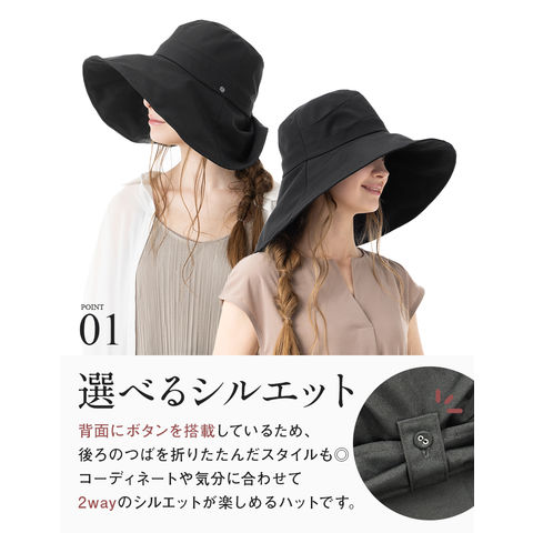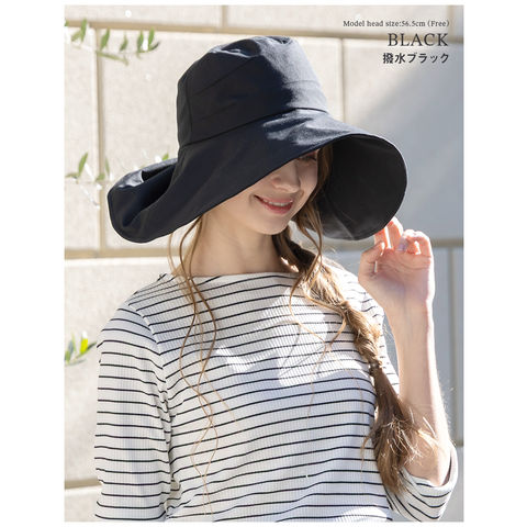 撥水つば広グラシアハット(155) 帽子 レディース 大きいサイズ 完全遮光 遮光100%カット UVカット つば広 折りたたみ あご紐で飛ばない 日よけ かぶーる日傘(かぶる日傘) 春 夏 春夏 母の日