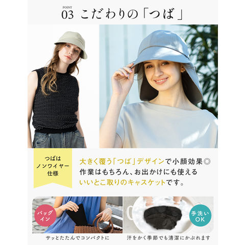 ・高さはモデル着用時の高さを記載しています。 ・頭囲・高さ・つばのサイズ表記は、5mm前後の誤差が生じる場合があります。計測サイズは目安としてお考えください。 ・遮光生地の厚さには多少の差異があり、中にはシャカシャカと音がする場合があります。 ・お取り扱いの前に品質ネームタグの記載内容をご確認ください。 ・ご覧いただくモニターの発色具合によって実物と色が異なって見える場合があります。 ・商品単体の画像が実際の商品と色合いが近いものとなっておりますので、ご参照ください。 ・同商品でも、染色過程で色味が多少変わる場合があります。 ・後頭部のサイズ調節テープで微調節が可能です。 ・取り外し可能なあご紐付きです。 |