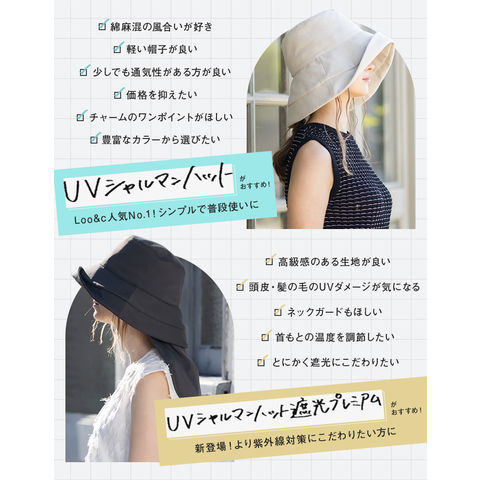 UVシャルマンハット 遮光プレミアム(282)帽子 レディース 大きいサイズ 完全遮光 遮光100% UVカット つば広 折りたたみ 自転車でもあご紐で飛ばない 日よけ かぶーる日傘 夏用 涼しい 春夏 母の日 洗濯機OK ネックガード付き 総遮光