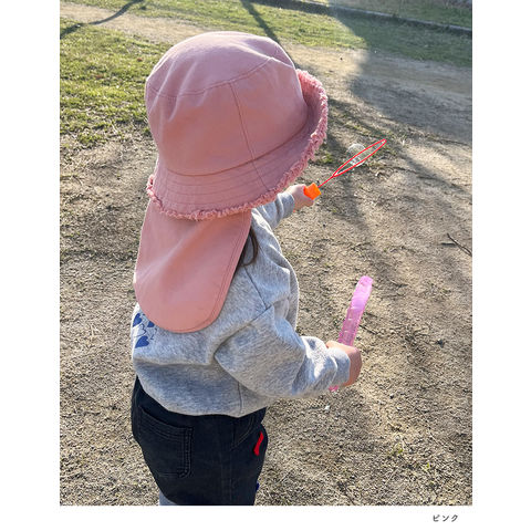 キッズフリンジバケットハット(285)キッズ kids 子ども 子供 ジュニア 男の子 女の子 サイズ調整 小さいサイズ バケットハット バケハ 日よけ ネックガード 日よけ UVカット 完全遮光 遮光100% UVカット 遠足 海 春 夏 春夏
