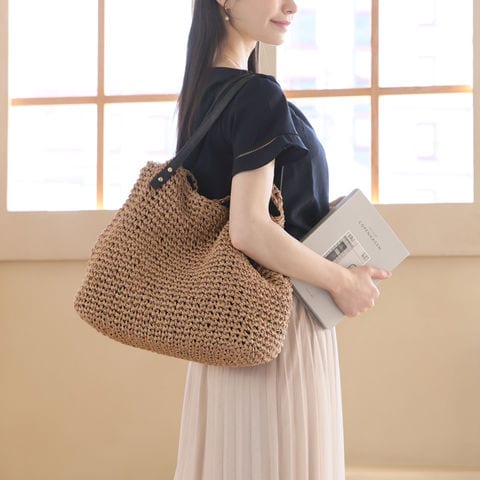 ペーパーだけで編み込んだバッグと違い、ポリエステル紐が上品さをプラスしてくれます。