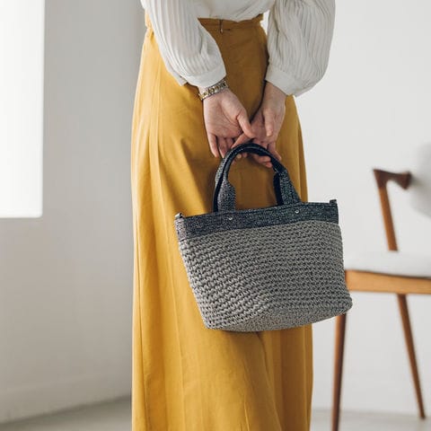 柔らかいペーパー素材とポリエステル紐を組み合わせ、一つひとつ丁寧に編み込みました。
