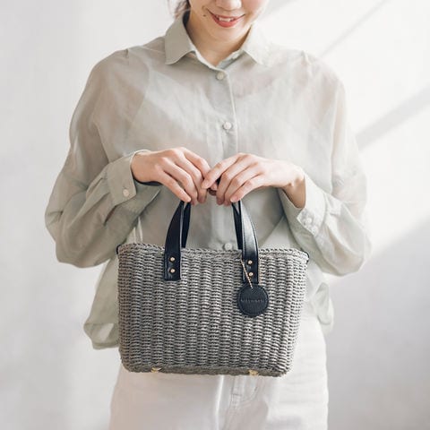 軽くて柔らかいペーパー素材を、一つひとつ手編みで仕上げた丈夫で密度の高いかごバッグです。