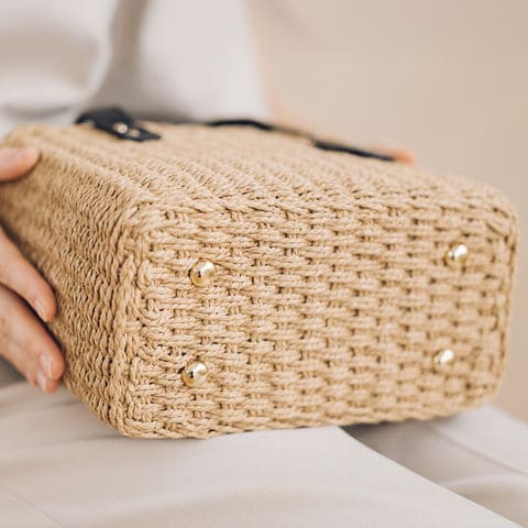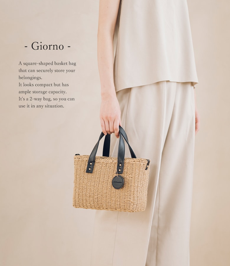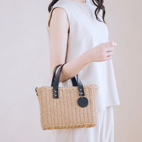 軽くて柔らかいペーパー素材を、一つひとつ手編みで仕上げた丈夫で密度の高いかごバッグです。