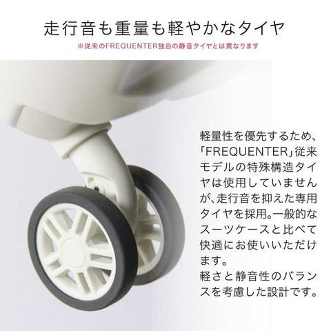 ※本モデルは軽量性を追求するため、「FREQUENTER独自の(特許取得)静音タイヤ」を使用しておりません。別売りのタイヤキットにてタイヤ交換は対応していません。静音性を重視されるお客様は、他シリーズもご検討ください。