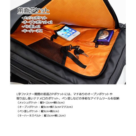 内装 前面ZIPポケット: メッシュポケット、オープンポケット×2、ペン挿し、キーハーネス