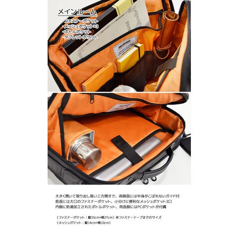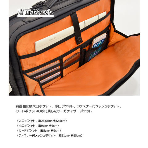 メインルーム: ファスナーポケット、メッシュポケット×3、PCポケット
