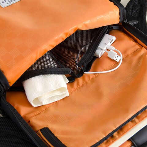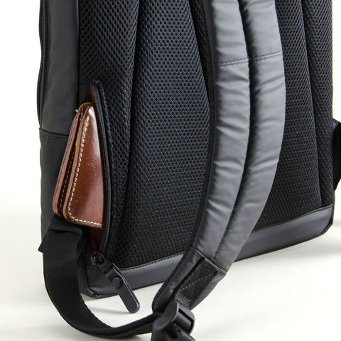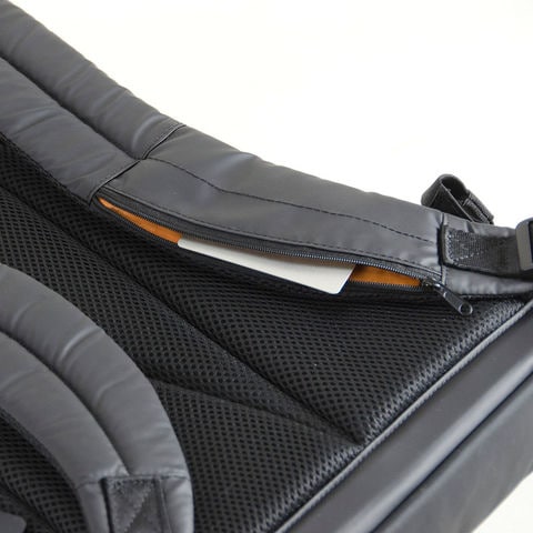 背中に面するファスナーポケットは財布など貴重品の収納に最適。リュックベルト上のファスナーポケットは、小さな小物入れとして便利。