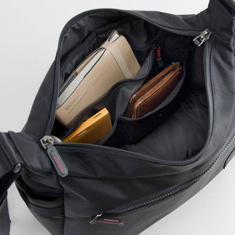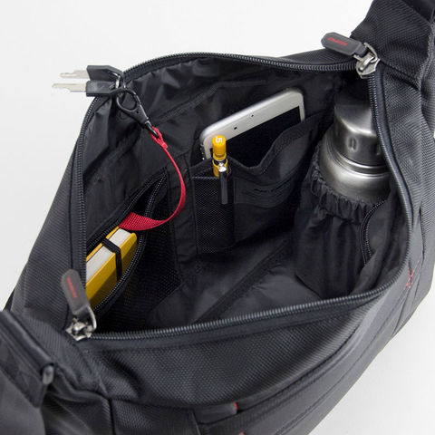 内装 メインルーム: ファスナーポケット大、ファスナーポケット中(メッシュ)、オープンポケット中(メッシュ)、オープンポケット小、ペン挿し、キーハーネス、ボトルポケット