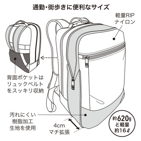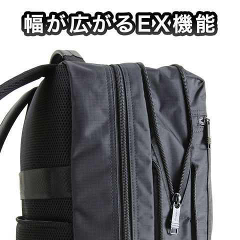 EXファスナーでマチ幅が4cm拡張し容量アップ。