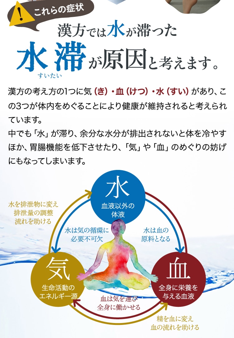 タクシャ末 1.40625g、ブクリョウ末 0.84375g、ビャクジュツ末 0.84375g、ケイヒ末 0.5625g、チョレイ末 0.84375g
