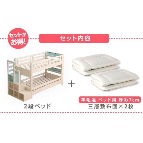 2段ベッド 二段ベッド 敷布団セット【超大型】 49602789〔ホワイトウォッシュ×グレージュ〕