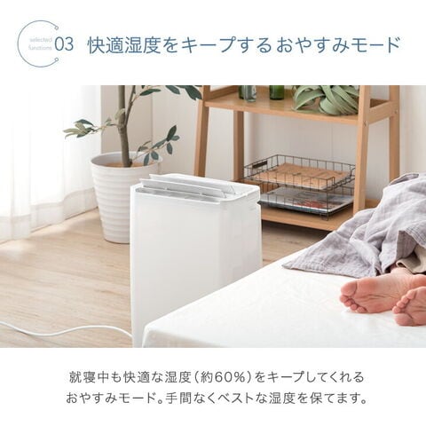| 詳細 | ■定格電圧:AC100V 50/60Hz ■定格消費電力:155W(50Hz)/200W(60Hz) ■電気代(1時間あたり): 約5.75円(50Hz)/約7.32円(60Hz) ■除湿方式:コンプレッサー式 ■最大除湿量: <環境温度30℃/湿度80%時>10L/日、12L/日 <環境温度27℃/湿度60%時>5.8L/日、6.19L/日 ■対応面積の目安: 50Hz…木造10畳/鉄筋20畳、60Hz…木造12畳/鉄筋24畳 ■動作音:38dB以下 ■タンク容量:3L ■推奨使用環境:温度5~38℃、湿度30~90% ■風量:2段階 ■湿度設定:40%、50%、60%、70% ■運転モード:連続、おやすみ、衣類乾燥 ■オンオフタイマー:1~24時間(1時間刻み) |