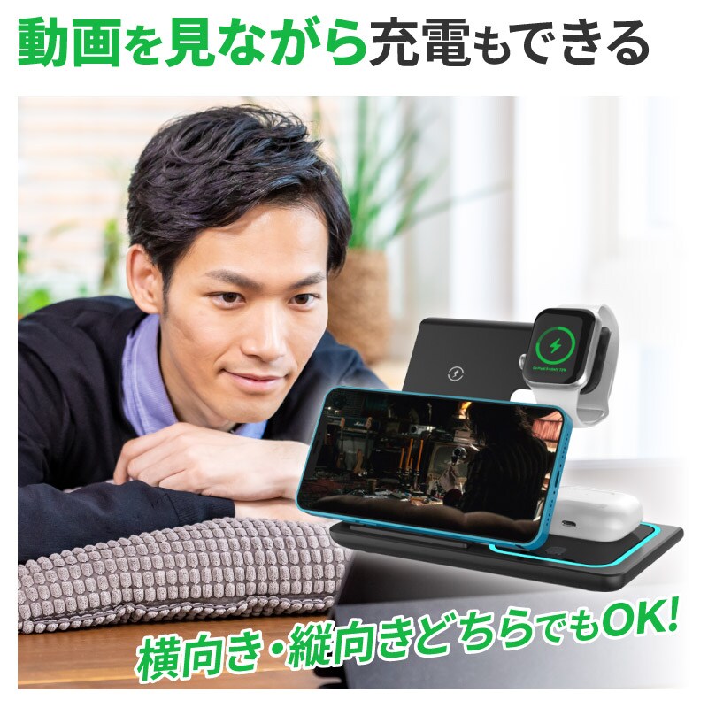 ワイヤレス充電器 充電スタンド Qi急速充電 iphone おしゃれ android apple アイフォン apple watch airpods pro イヤホン ipad usb usb-c エアーポッズ エクスペリア 3in1 18W Airpods 置くだけで充電