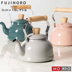スタイリッシュなデザインとお洒落なコットンカラーが人気のケトルです。サイズは2.1Lと、ひとり暮らしや大家族のサブケトルとしても使いやすく、ボディは熱伝導と保温性の高いホーロー製。IH・ガスにも対応しています。笛付きだから、湯沸かし中に別の用事をしても音で気づけて安心。