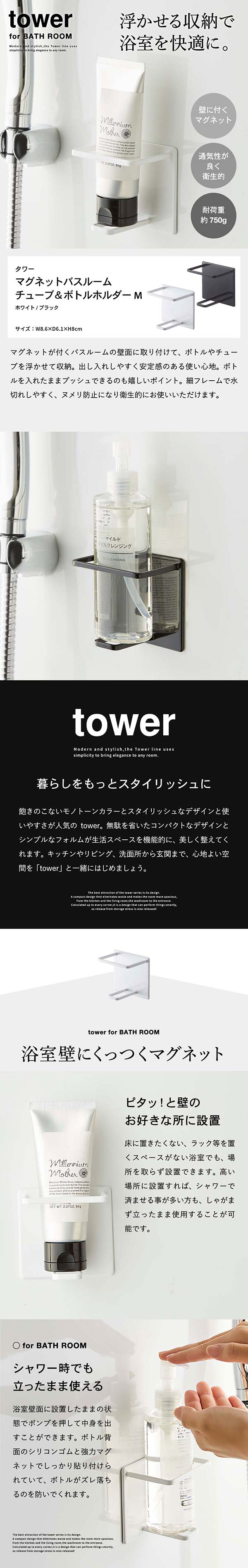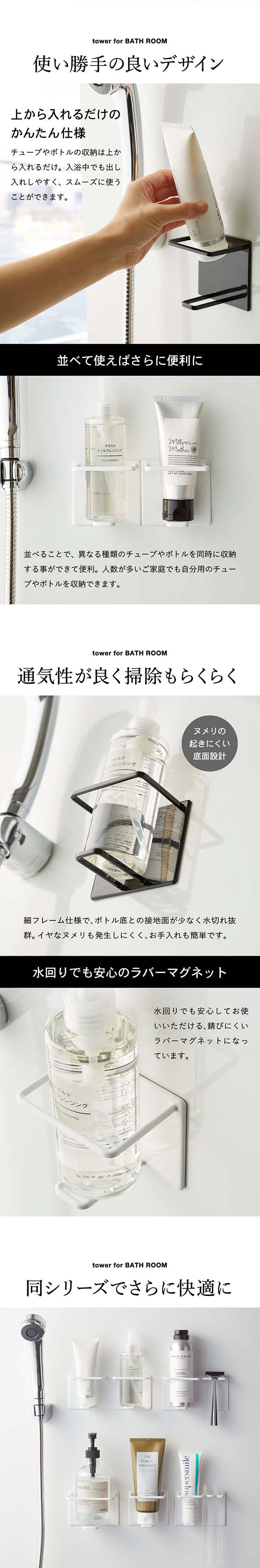 tower マグネットバスルームチューブ&ボトルホルダー M タワー 山崎実業 5503 5504 / チューブ ボトル マグネットホルダー お風呂 バスルーム 浮かせる収納 タワーシリーズ マグネット / ホワイト