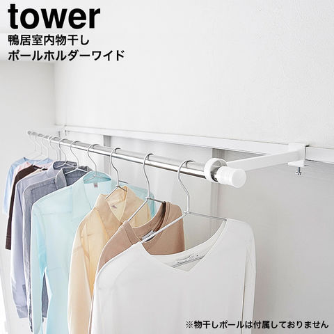 山崎実業 tower 鴨居室内物干しポールホルダー タワー 奥行ワイド 公式 1586 1587 送料無料 / 部屋干し 室内干し 物干し竿 ホルダー 窓枠用 取付 取り付け 洗濯物 梅雨 タワーシリーズ yamazaki JGS / ホワイト