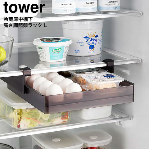 山崎実業 tower 冷蔵庫中棚下高さ調節卵ラック タワー L 公式 10112 10113 送料無料 / 卵ケース 冷蔵庫内 収納ケース 収納ボックス 整理トレー 整理ケース 冷蔵庫収納 yamazaki / ブラック