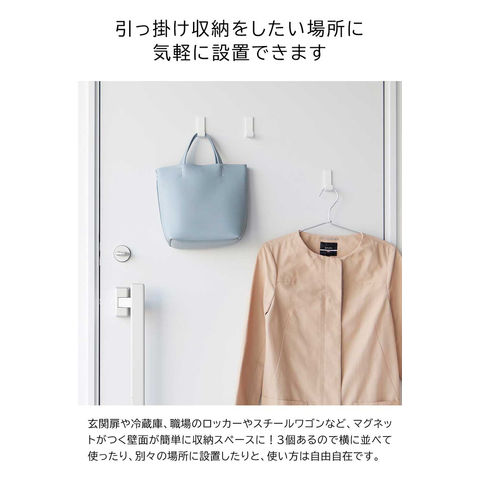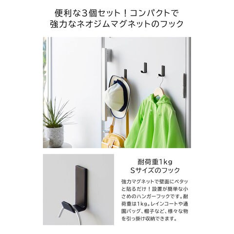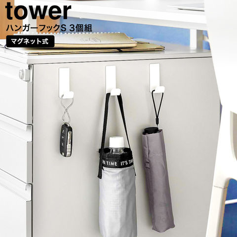 山崎実業 tower マグネットハンガーフック タワー S 3個組 公式 10233 10234 / 玄関 デスク横 カバン バッグ 水筒 ランチバッグ 傘 ドアハンガー ネオジム磁石 マグネットフック yamazaki / ホワイト