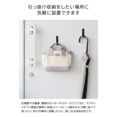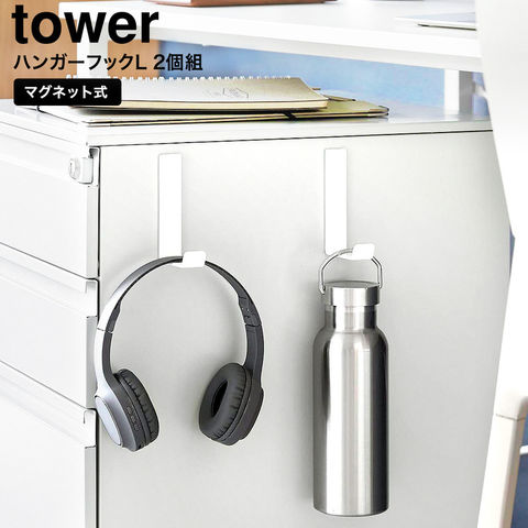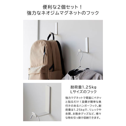 山崎実業 tower マグネットハンガーフック タワー L 2個組 公式 10235 10236 / 玄関 デスク横 カバン バッグ 水筒 ランチバッグ 傘 ドアハンガー ネオジム磁石 マグネットフック yamazaki / ホワイト