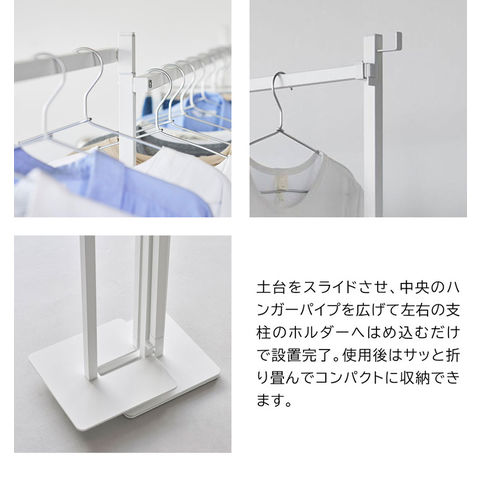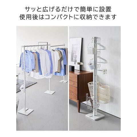 山崎実業 tower 折り畳み室内物干し タワー 2連 公式 10266 10267 送料無料 / 物干しスタンド 洗濯物干し 室内干し 部屋干し 室内用 折りたたみ 物干し竿 リビング 省スペース / ホワイト