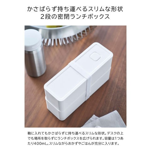 山崎実業 tower バルブ付き密閉ランチボックス タワー 2段 スリム 公式 10272 10273 / お弁当箱 容量400mL(1つあたり) 電子レンジ対応 食洗機 冷凍庫 密閉 タワーシリーズ yamazaki / ホワイト