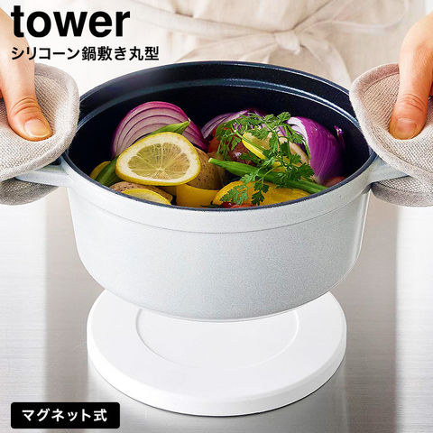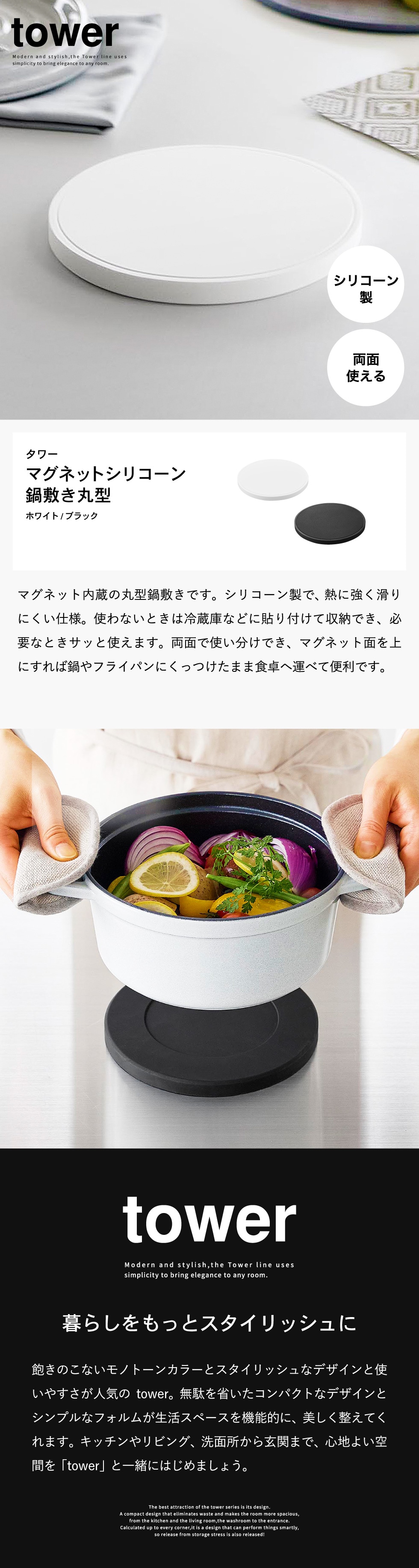 山崎実業 tower マグネットシリコーン鍋敷き タワー 丸型 10318 10319 送料無料 / ラウンド 両面 冷蔵庫横 キッチンパネル 貼付け シリコン ナベ敷き 鍋置き 食洗機器対応 タワーシリーズ / ホワイト