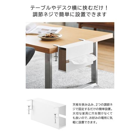 ■取り付け可能な場所 天板の厚さが1.2~5.5cm(幕板やパイプ等を含む) 幅24cm以上(脚を含まず) 奥行き4cm以上のテーブルなど ※設置場所の構造や材質、形状によっては取り付けできない場合があります。 |