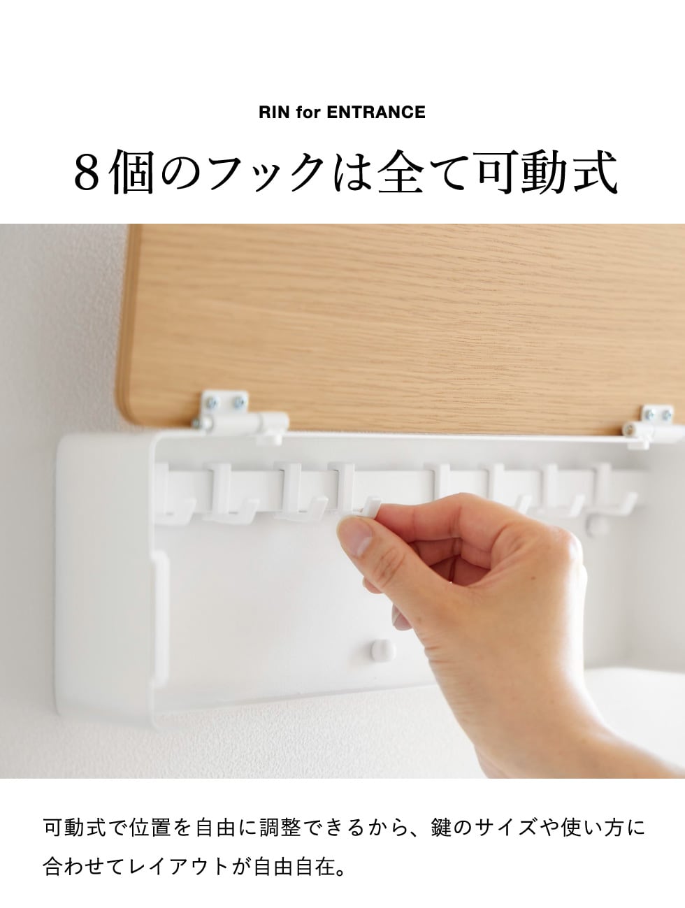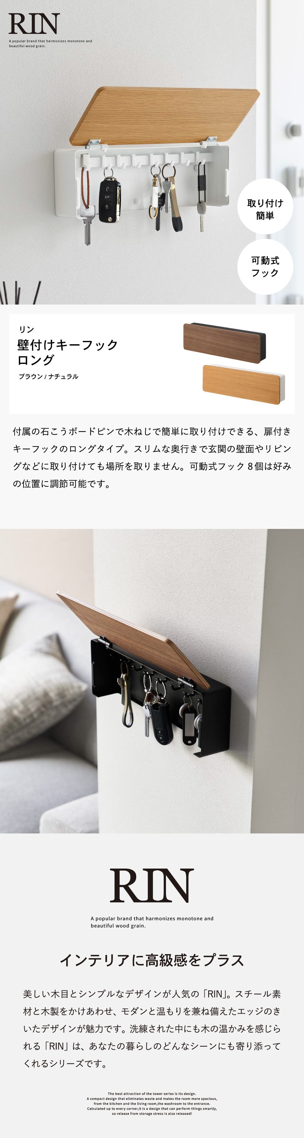山崎実業 RIN 壁付けキーフック リン ロング 公式 10608 10609 送料無料 / 鍵 収納 鍵掛け キーボックス フック 8本 玄関収納 石こうボード壁対応 ウォール 石膏ボードピン 壁面収納 yamazaki JGS / ブラウン