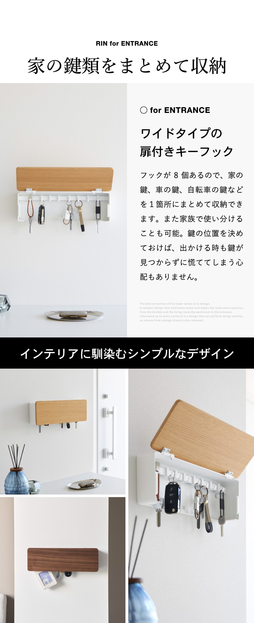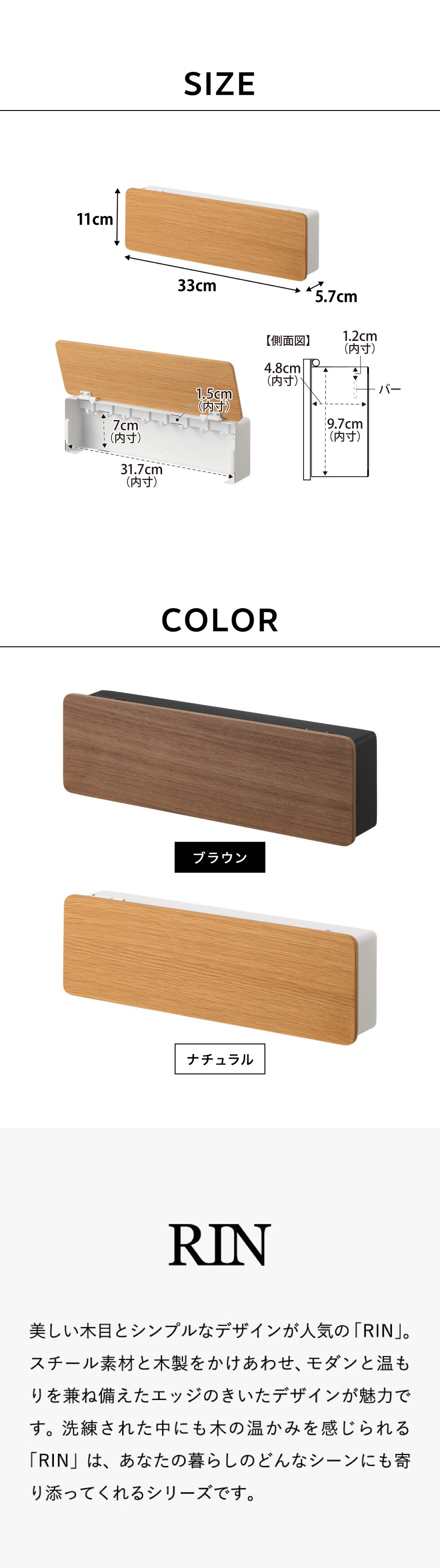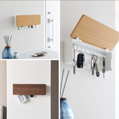 ●素材・材質: 本体:スチール(粉体塗装) 扉:天然木積層合板(ウレタン樹脂塗装) 緩衝材:シリコーンゴム フック×8:ポリカーボネート
