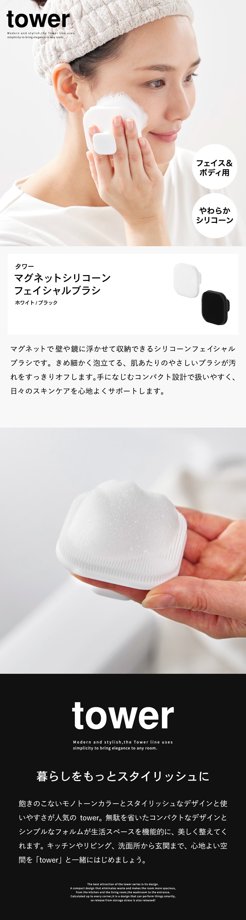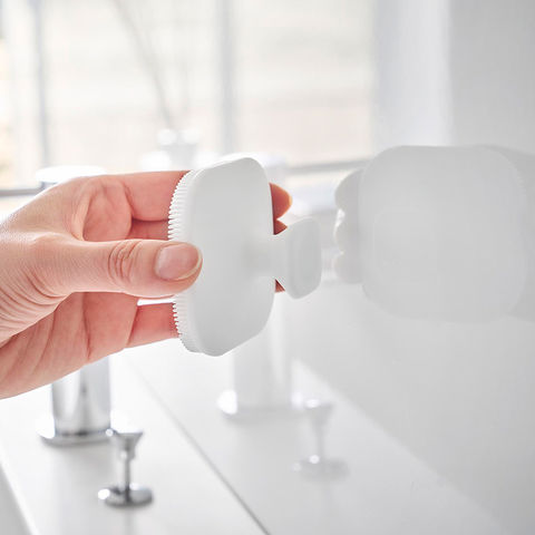 山崎実業 tower マグネットシリコーンフェイシャルブラシ タワー 公式 10614 10615 / 洗顔ブラシ 泡立てネット シリコン マッサージ 毛穴ケア 角質 小鼻 黒ずみ 洗面所 浮かせる収納 / ホワイト