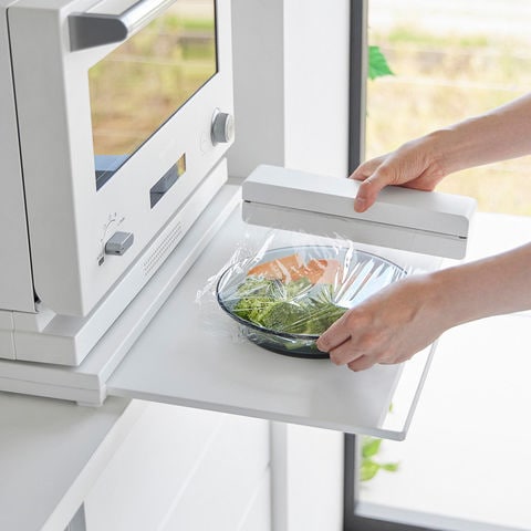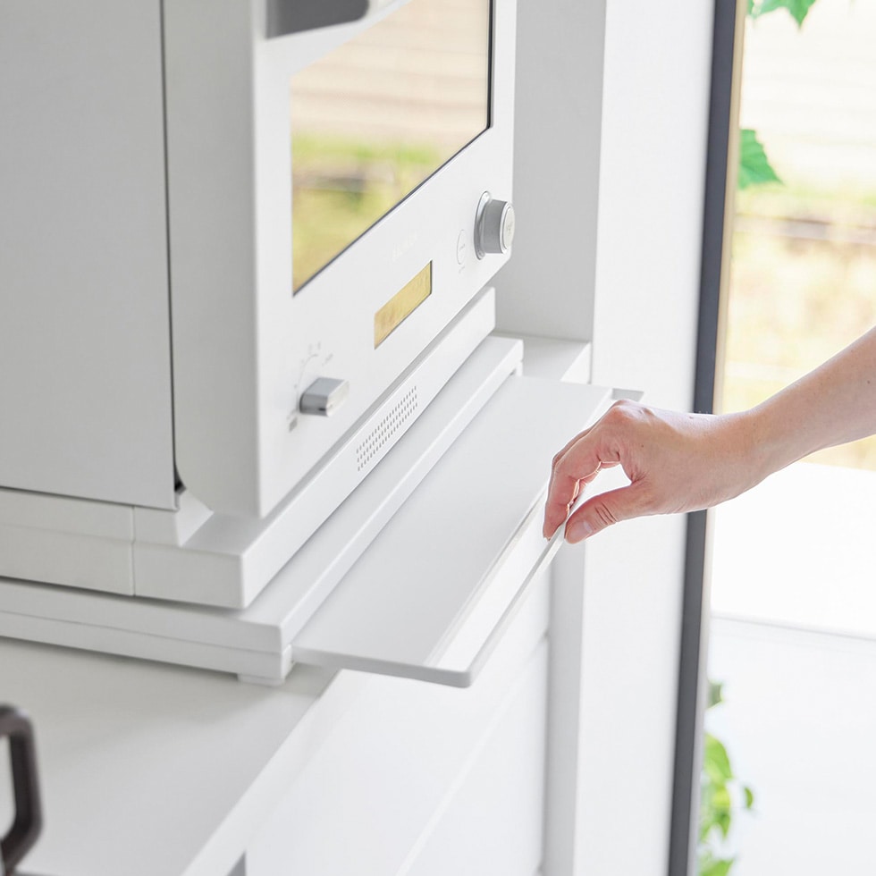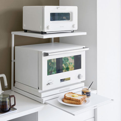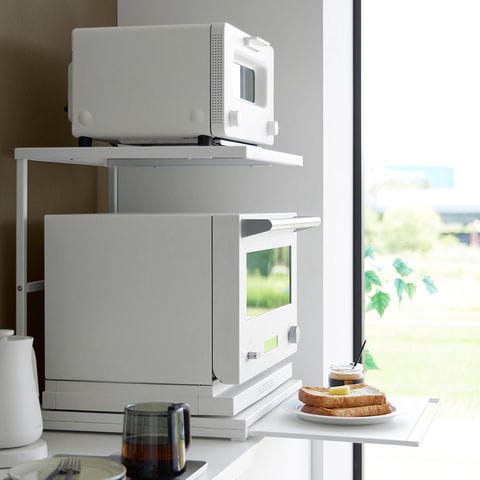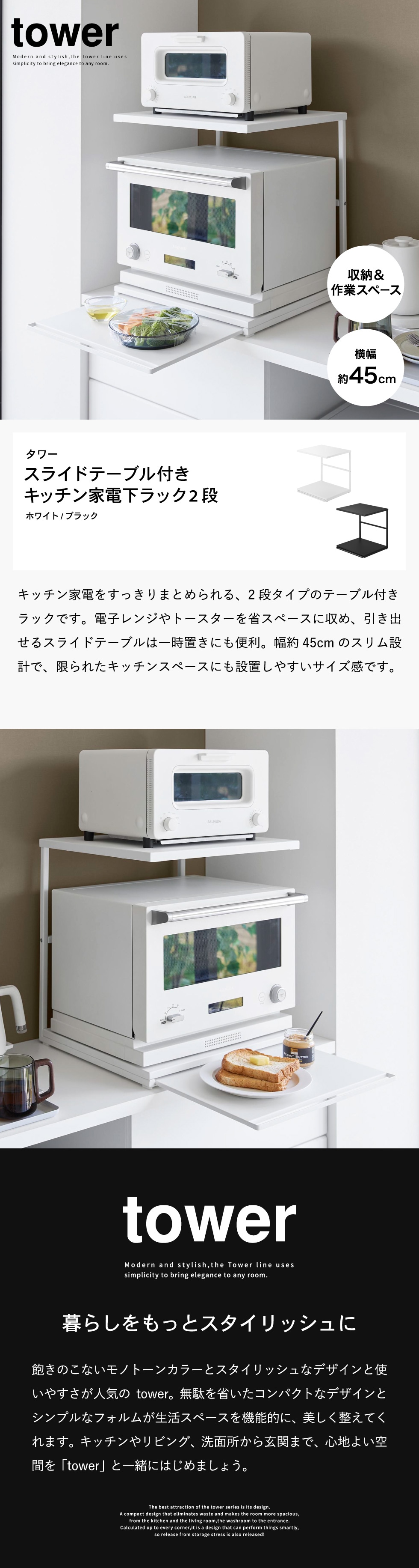 山崎実業 tower スライドテーブル付きキッチン家電下ラック タワー 2段 公式 10652 10653 送料無料 / 家電ラック キッチンラック 電子レンジ トースター スライドトレー キッチン収納 タワーシリーズ / ホワイト