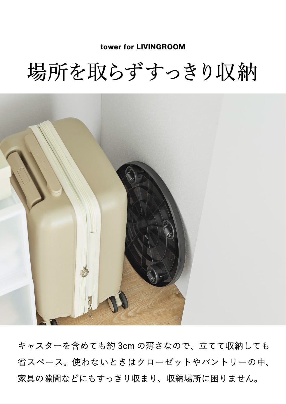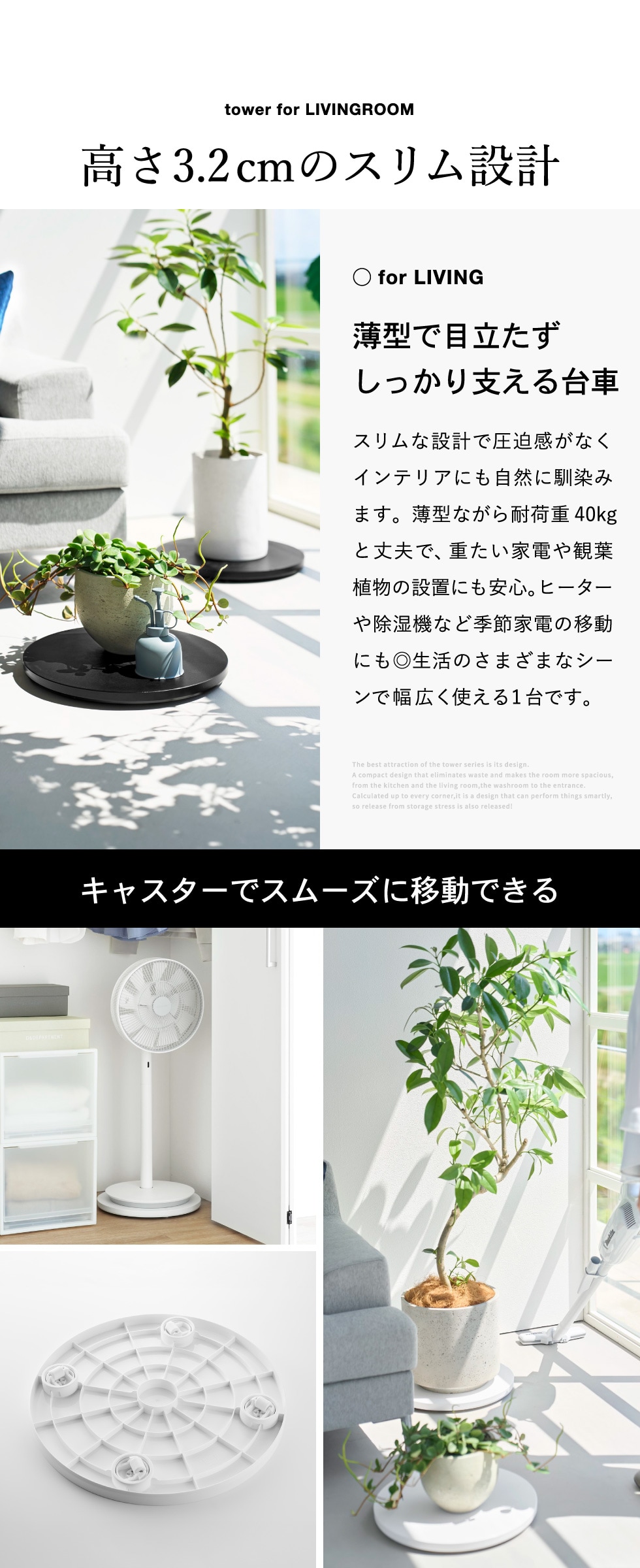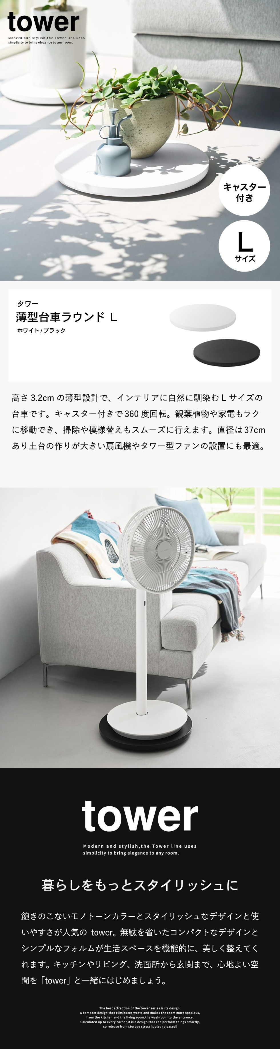山崎実業 tower 薄型台車 タワー ラウンド L 公式 10695 10696 ホワイト ブラック 送料無料 / 丸型 平台車 耐荷重40kg サーキュレーター ファン 観葉植物 加湿器 家電 ローテーブル 省スペース 収納 yamazaki JGS / ホワイト