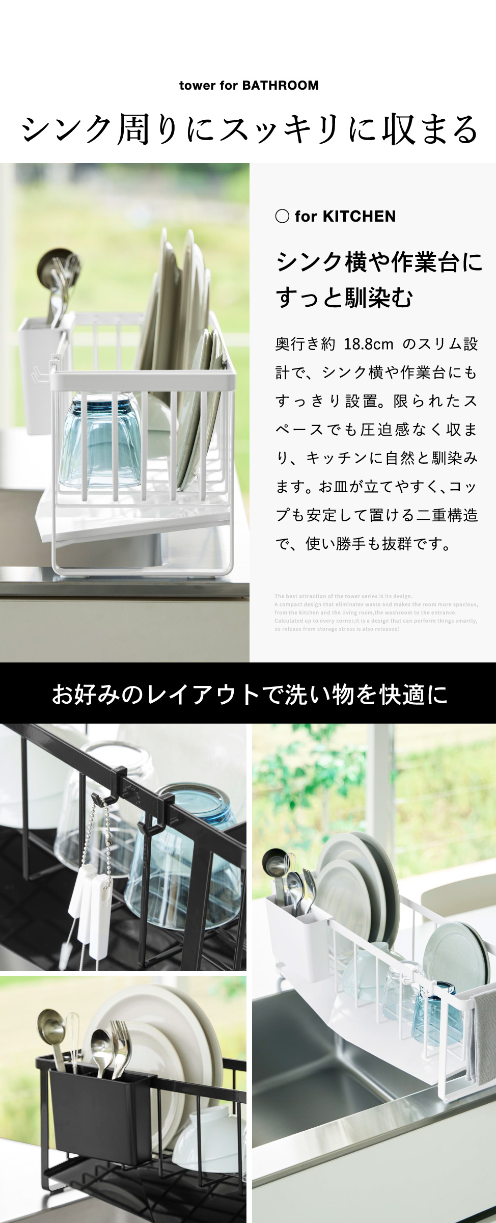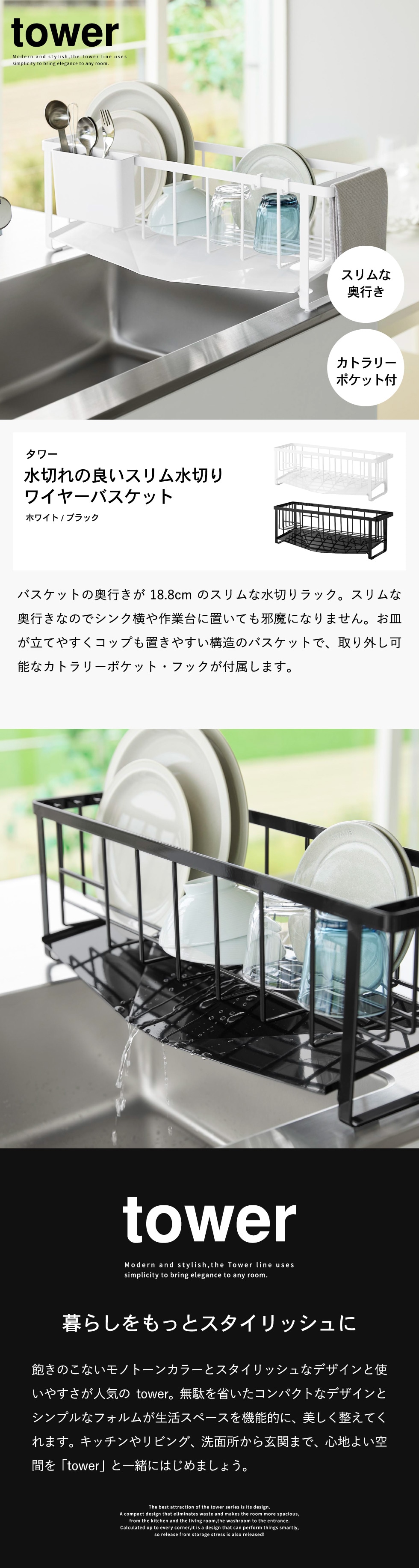 山崎実業 tower 水切れの良いスリム水切りワイヤーバスケット タワー 公式 10701 10702 送料無料 / 水切りかご 水切りラック 水切りトレー 自動排水 キッチン用品 yamazaki JGS / ホワイトのレビュー
