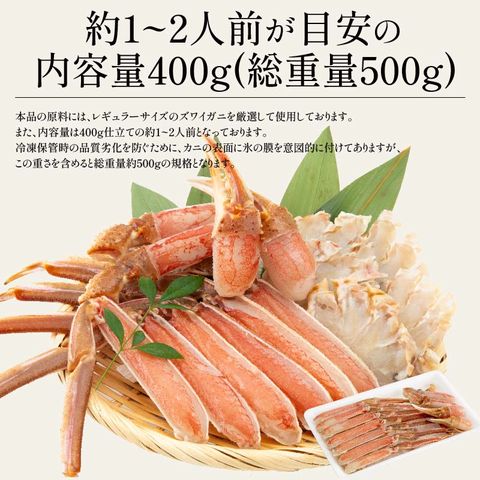 かに カニ 蟹 【当店通常価格4,500円⇒送料無料4,001円!】ズワイガニ ポーション むき身 刺身 生 カット済み 400g(総重量500g) ずわい蟹 鍋 生ずわい 蟹 海鮮 ズワイ蟹 刺し身 ポーション 生ずわいがに むき身 かにしゃぶ かにポーション お歳暮 食べ物 グルメ 食品