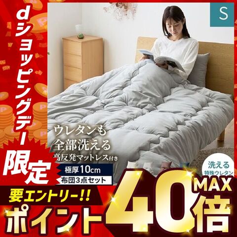 洗えるウレタンを使用した3つ折りマットレス寝具3点セット。
