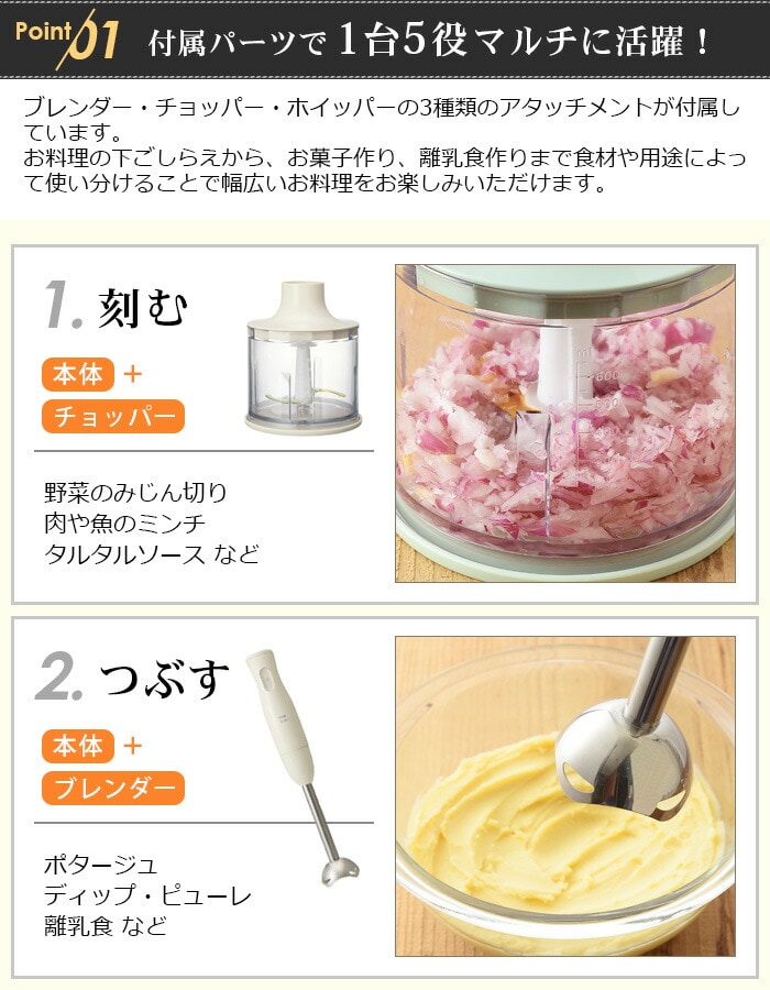 ブルーノ マルチスティックブレンダー BRUNO multi stick blender ≪アイボリー BOE034-IV≫ フードプロセッサー