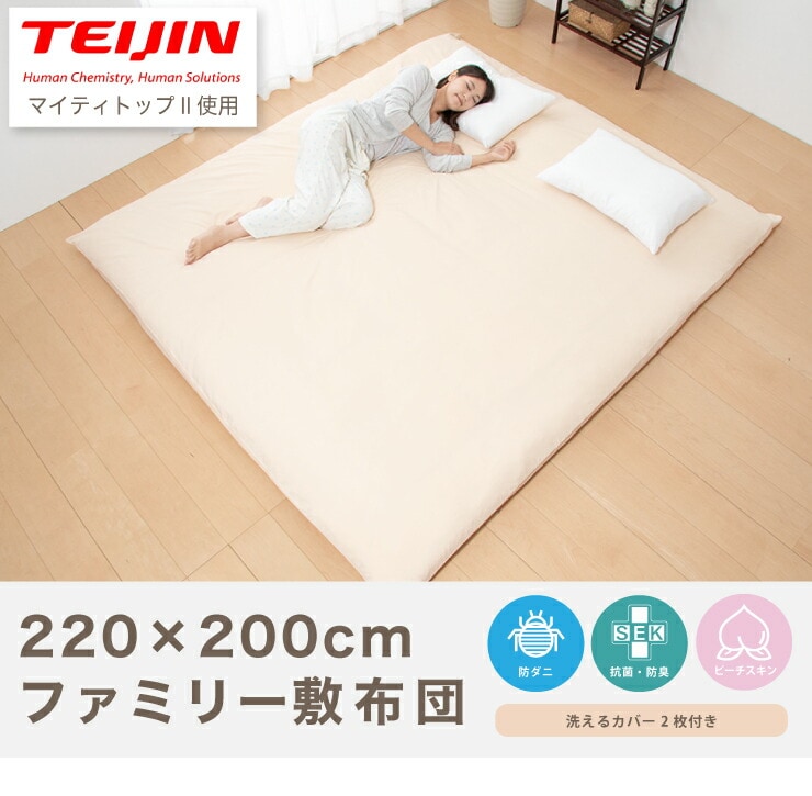 ファミリー 敷布団 カバー2枚付 220x200cm テイジン 帝人 マイティトップ 敷き布団 カバー付き 布団 家族 敷きふとん 敷ふとん ふとん 抗菌 防臭 来客用【送料無料】