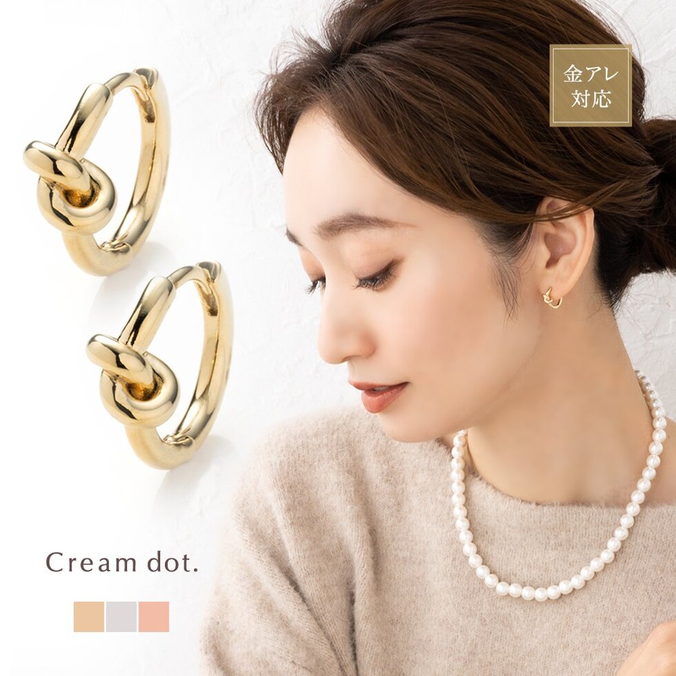 ピアス 金属アレルギー ニッケルフリー レディース フープ 中折れ キャッチレス 開閉式 ノット 結び目 メタル cream dot ゆうパケット [ゴールド_ピアス]
